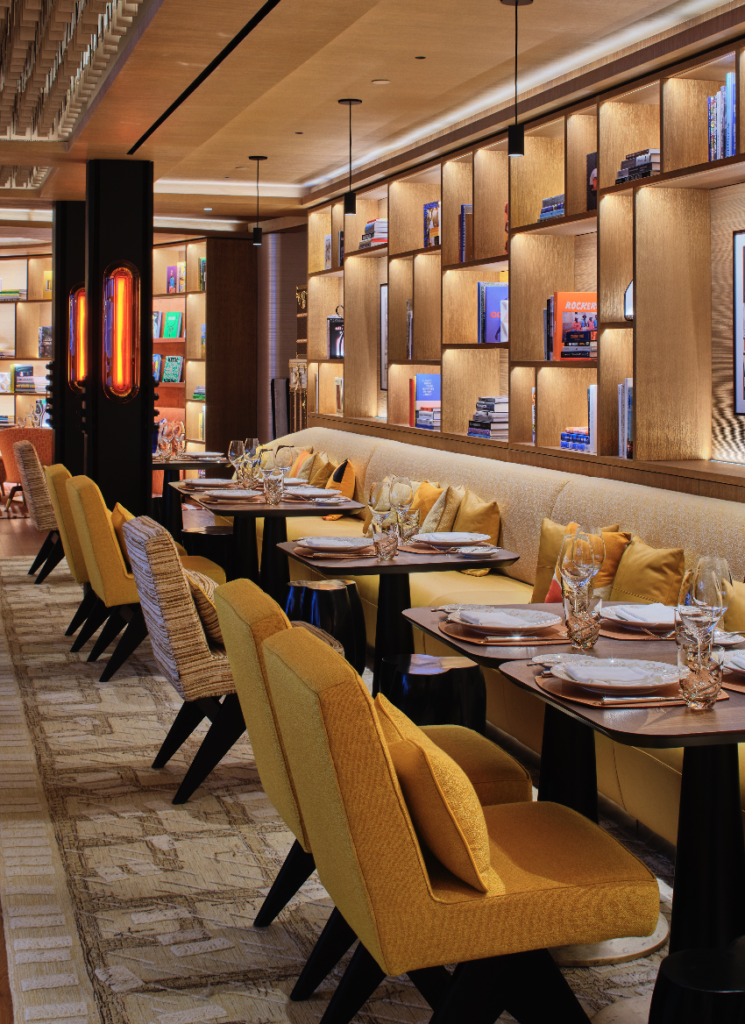 図書館をテーマにしたこのダイニングスペースは、ニューヨーク市内で人気のレストラン「Pastis」や「Le Coucou」を運営するスター・レストラングループ(Starr Restaurant Group)の創業者であり、高級外食プロデューサーとして知られるスティーブン・スター(Stephen Starr)との提携によって実現した。